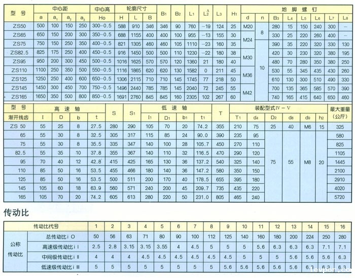 ZS系列圆柱齿轮减速机是按国家专业标准ZBJ19004生产的外啮合渐开线斜齿圆柱齿轮减速器。ZS、ZSH、ZSSH系列圆柱齿轮减速机的齿轮采用高强度低碳合金钢经渗碳淬火而成,齿面硬度达HRC58-62,齿轮均采用数控磨齿工艺,精度高,接触性好;传动率高;运转平稳,噪音低;使用寿命长,承载能力高;易于拆检,易于安装。 ZS型减速器是三级渐开线圆柱齿轮减速器,ZSH是三级圆弧圆柱齿轮减速器,ZSSH是三级双圆弧圆柱齿轮减速器。它们主要用于矿山、冶金、水泥、建筑、化工、轻工等各种机械设备的机械传动。