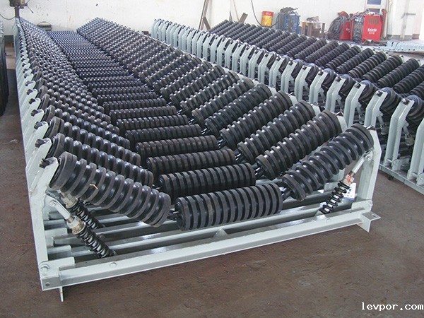 (4)缓冲托辊有弹簧板型托辊、缓冲圈型托辊、强力缓冲型托辊、可调弹力型托辊、吊挂型托辊等;